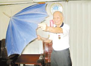 記者了解到,抗日戰爭期間,賴行總共換了5把雨傘,擊斃的敵人有20人以上。戰爭結束後,他仍珍藏著最後使用的一把天藍色雨傘,直至今天。本月初,賴行獲悉鳳崗博物館今年年底前開館,現在正向全鎮徵集展品,便決定把雨傘捐贈給博物館。據悉,昨日下午,博物館工作人員正式接受了賴行老人的捐贈,這把雨傘將在今年11月與市民見面。