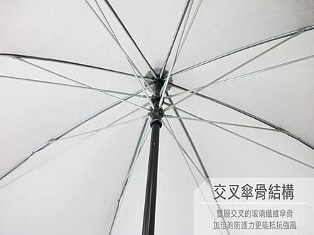 8支傘骨:全玻璃纖維傘骨,雙層交叉傘骨結構